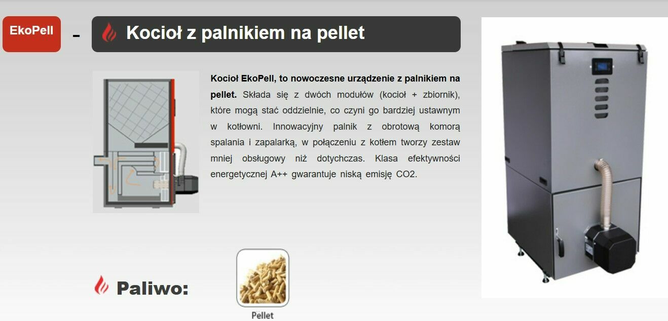Kocioł pelletowy typu EkoPell 15KW STEMPIN 13300 zł - to nowoczesne urządzenie grzewcze z palnikiem KIPI na pellet. Bardzo ustawny w kotłowni, zwarta konstrukcja, prosty schemat instalacyjny, pojemny zasobnik - 8 worków pełny zasyp zasobnika.